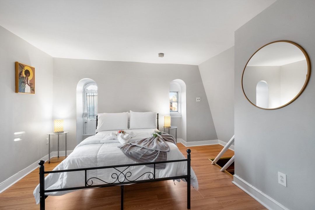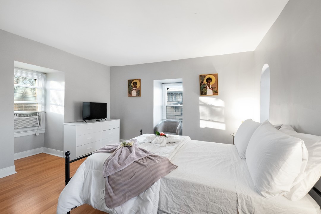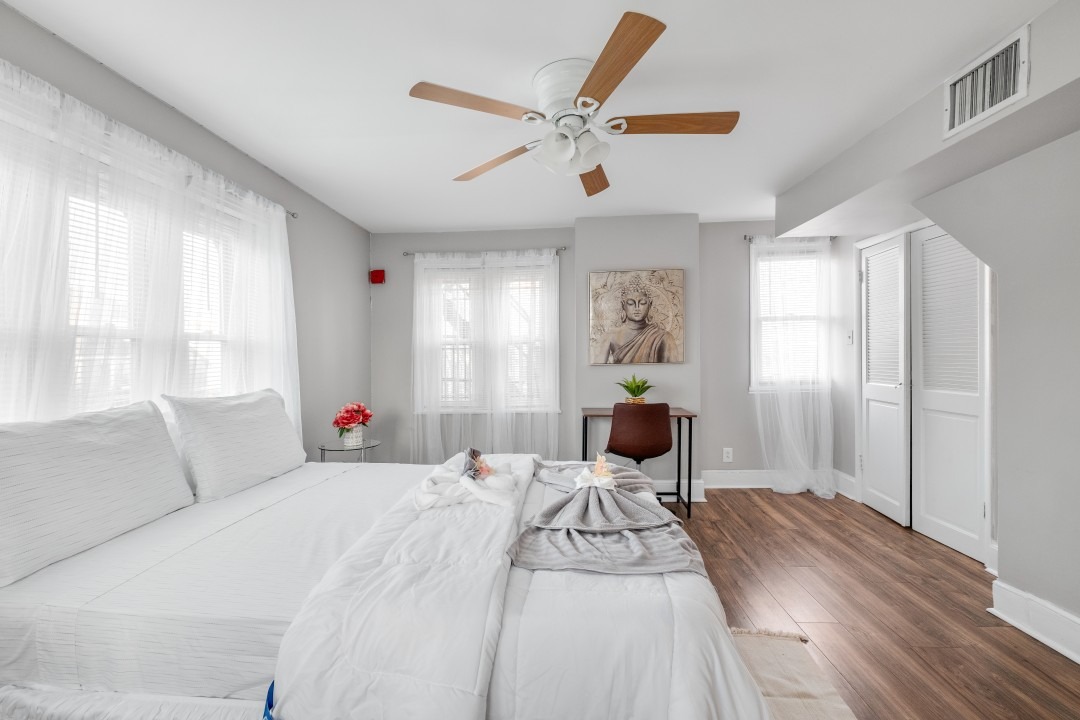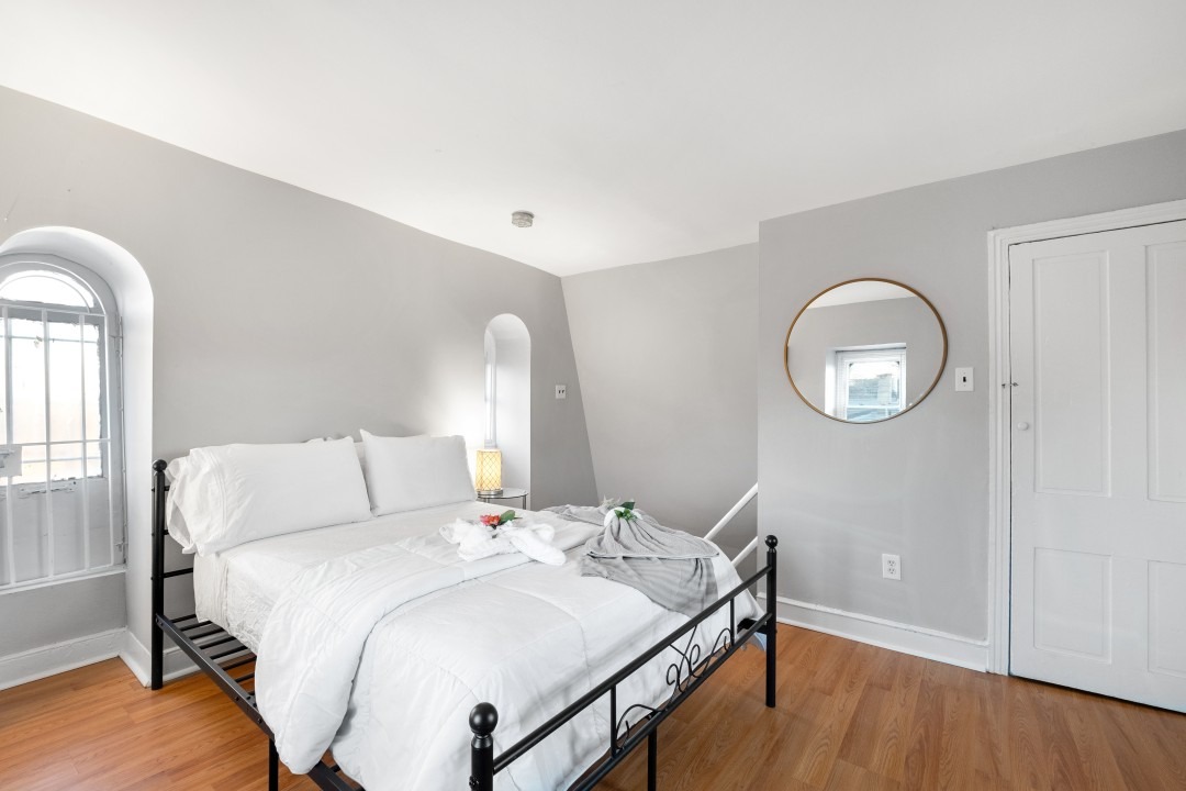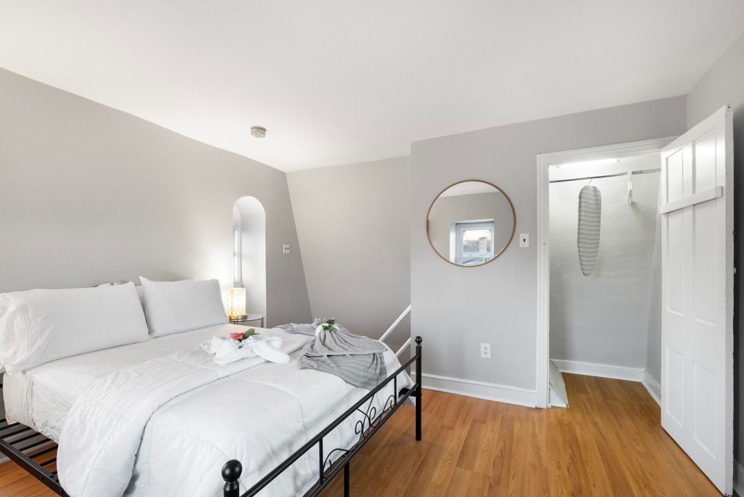 Welcome to our beautifully designed 2 bedroom apartment that exudes comfort, convenience, and positive energy from the moment you step inside. Prepare to be pleasantly surprised by the charming and efficient use of space in our large flat. The 1st bdrm features a full-size comfortable bed adorned with plush quilts, cozy linens, and soft pillows, ensuring a restful night’s sleep. The 2nd bdrm has a queen size bed, work from home desk and seating area and plenty of space. Both bedrooms are private from each other. For your dining needs, we have set up a dining set that seats 4 perfect for enjoying your morning cup of coffee or sharing a delicious meal. The fully stocked kitchen boasts all the amenities you need to prepare budget-friendly meals or impress your loved ones with a culinary masterpiece. It includes a microwave, cooking utensils, dishware, toaster, coffee maker, pots and pans, ensuring your comfort and convenience. We have 1.5 clean and well-maintained bathrooms features a stand-up shower, toilet, vanity, and mirror. There is an half bathroom by the living room as well. To enhance your entertainment experience, we have provided a comfortable sofa and plush chairs facing a flat-screen TV, perfect for indulging in your favorite streaming shows. With reliable wifi, a comfortable apartment, and a fantastic location, this is an excellent choice for your stay. Situated on the third floor of a traditional Philadelphia building, this apartment offers a unique opportunity to experience the charm of the city. Additionally, there is a coin-operated community washer and dryer available 24/7 in the lower level area. We are delighted to welcome pets, although a monthly pet fee is required. Please ensure that your pet is house trained. Parking is available in the area, although some restrictions may apply depending on the time of day. Overnight parking is free, but we kindly ask that you carefully read all parking signs in the vicinity.